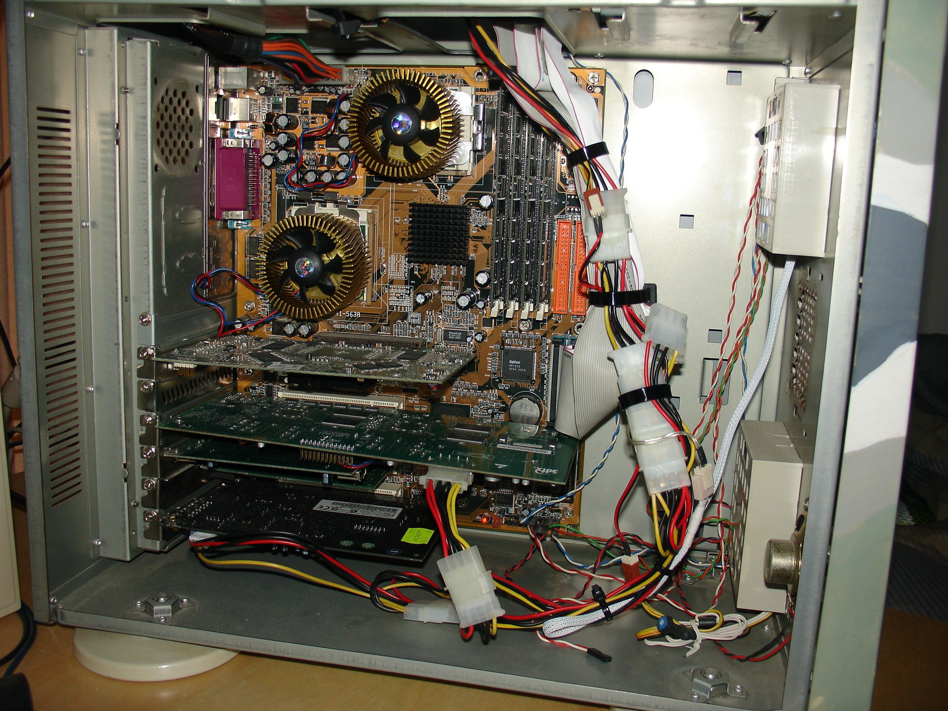 From 2003 to 2005 this system ran as file server 24/7 at a friend's company II sold it to him for 550 in May of 2003 and bought it back for 100 Eur incl the Addtronics 7896A and this layout in August of 2008:
