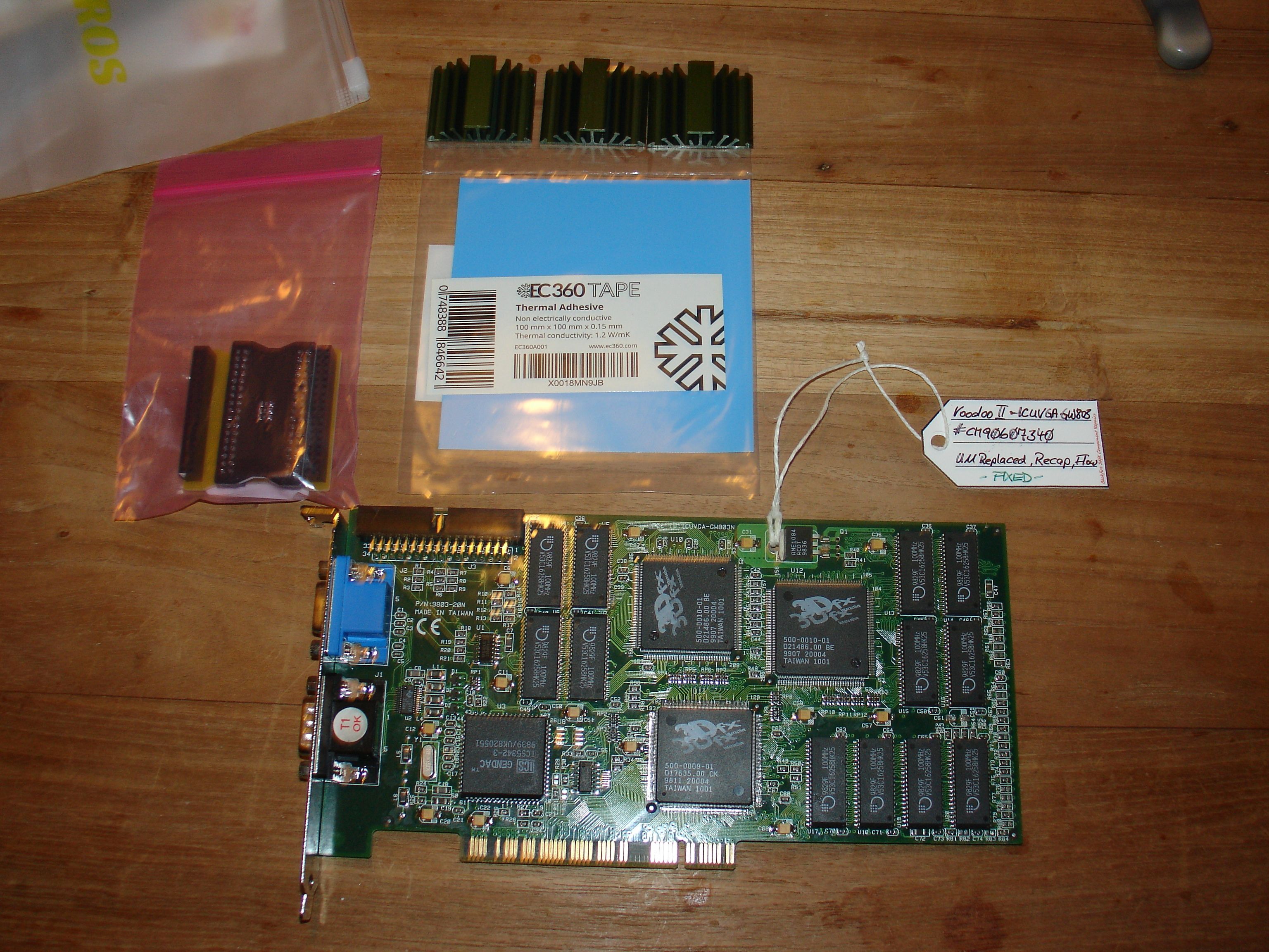 V3 3 500's are such nice cards , I always am seeking the 3dfx/Compaq USA Voodoo3 3500c + TV-Out Rev.A 4399 - 2100 the same for the PowerColor Evil King 3 Pro / Evil King 3 Ultra, these are just the best alternatives as they don't require any dongles, some people mass bought them as by having duplicates and this can be an issue for those that actually seek one to use, as many have tried to sell them for stupid amounts, this is why I just stuck to my original Voodoo3 3500 TV AGP instead, I just place a high box behind the system thereby avoiding the sag on the original IO Pod it's self, the M1-DA dongles are nice but due to the narrowly placed shielding many of these don't even fit.